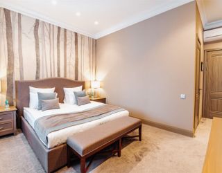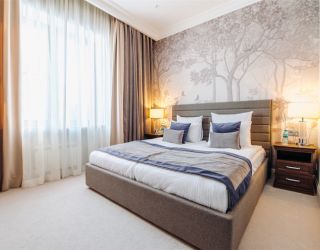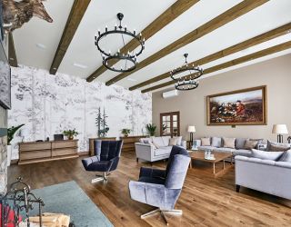 Архитектурное решение и интерьеры гостиничного комплекса выполнены в неоклассическом стиле с элементами английского стиля, который подчёркивается элегантной растительной росписью стен номеров. В цветовом оформлении гостиницы преобладают благородные натуральные оттенки. Холлы и коридоры украшают оттиски с тематическими изображениями сцен охоты.