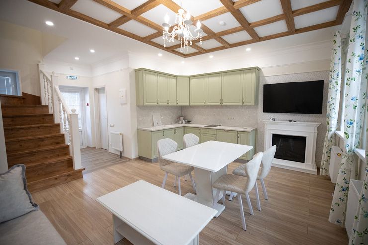 Санаторий предлагает для размещения 1-, 2-, 3-местные номера, полулюкс и люкс, а также двухэтажные таунхаусы выполнены в современном дизайне.