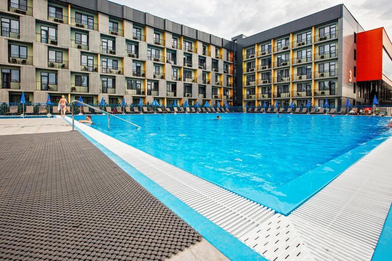- открытый подогреваемый бассейн с зоной отдыха (с 26 апреля до 1 октября), детский и взрослый бассейны, финская сауна, хамам, купель с гидромассажем в SPA-комплексе (2 часа в день)