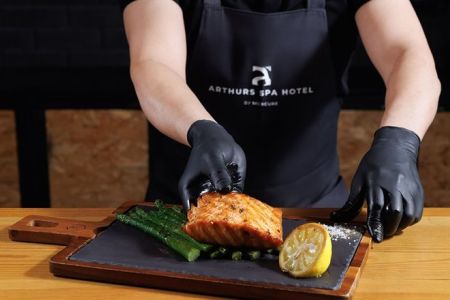 Поездом до Савеловского вокзала, далее до станции «Катуар» на электричке, далее на такси до Артурс SPA отеля.