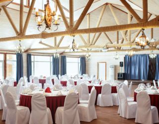 Отдельно стоящий банкетный зал с панорамным видом на Истринское водохранилище, выполненный из натурального дерева. Современное световое и звуковое оборудование, сцена, гримерная комната, гардеробная, зона бара делают ресторан идеальным местом для проведения торжественных мероприятий, юбилеев компаний, свадеб.