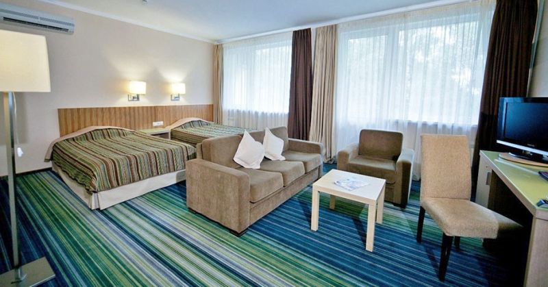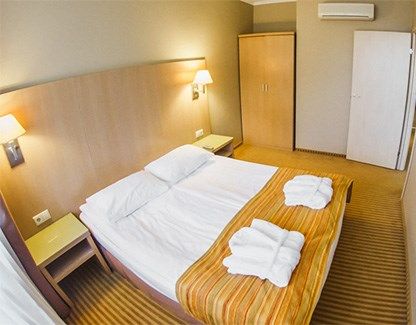 Гостей ожидают 3 жилых корпуса с комфортабельными номерами категории Стандарт, Полулюкс, Делюкс и Апартаменты, рассчитанные на единовременное размещение до трехсот пятидесяти человек. В каждом номере есть мебельный гарнитур, телевизор, холодильник, кондиционер, санузел с душем и туалетными принадлежностями.