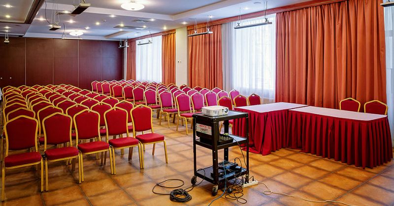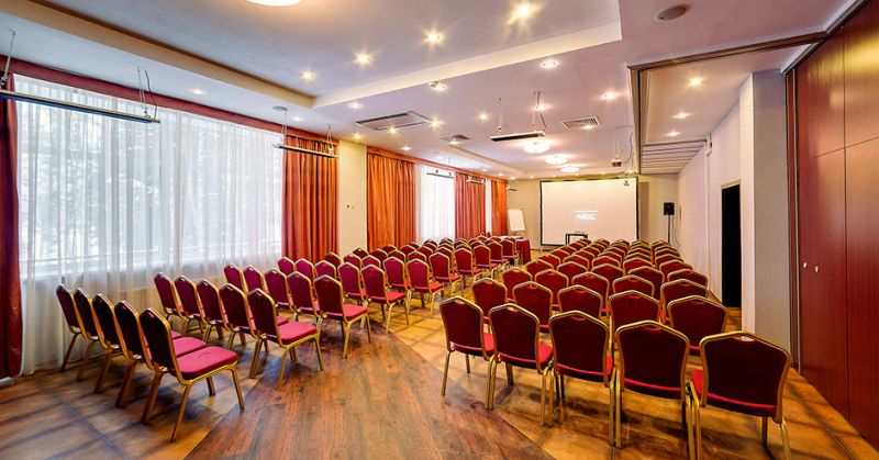 Уникальный конференц-зал Трансформер расположен в Главном корпусе отеля и отличается большой вместительностью. Зал возможно разделить шумоизоляционными перегородками на шесть конференц-комнат - это позволяет оформить конференц-пространство согласно целям мероприятия.