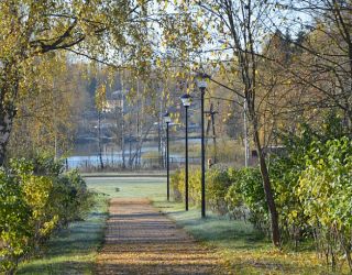 Поездом до ж/д вокзала г. Звенигород, далее на автобусе №22 до остановки «Городок Фуньково», далее 1,2 км до отеля.