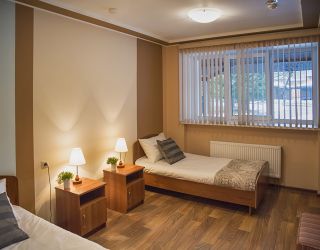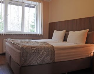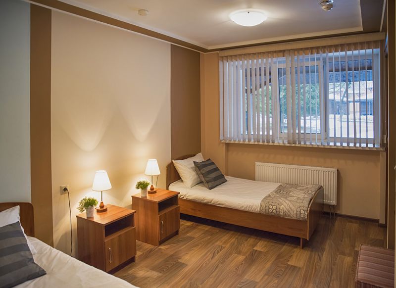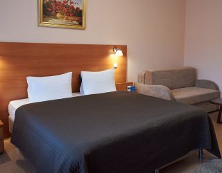 Гостям отель предлагает размещение в жилых корпусах в двухместных номерах категории Стандарт, Комфорт, Люкс. Просторные номера укомплектованы необходимой мебелью, телевизором, холодильником и оснащены санузлом с душем.