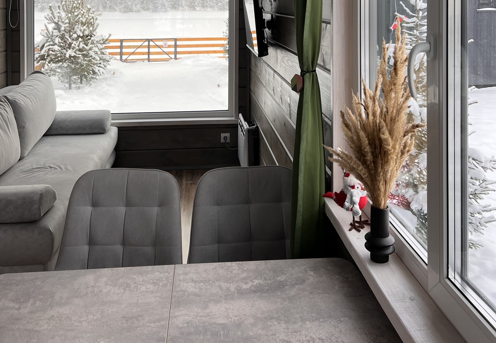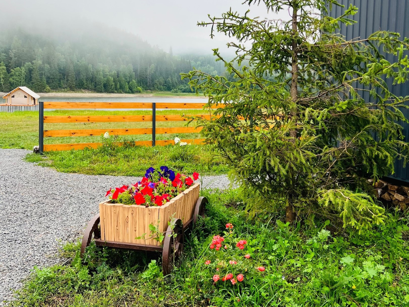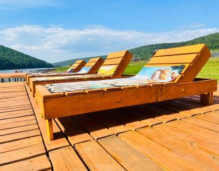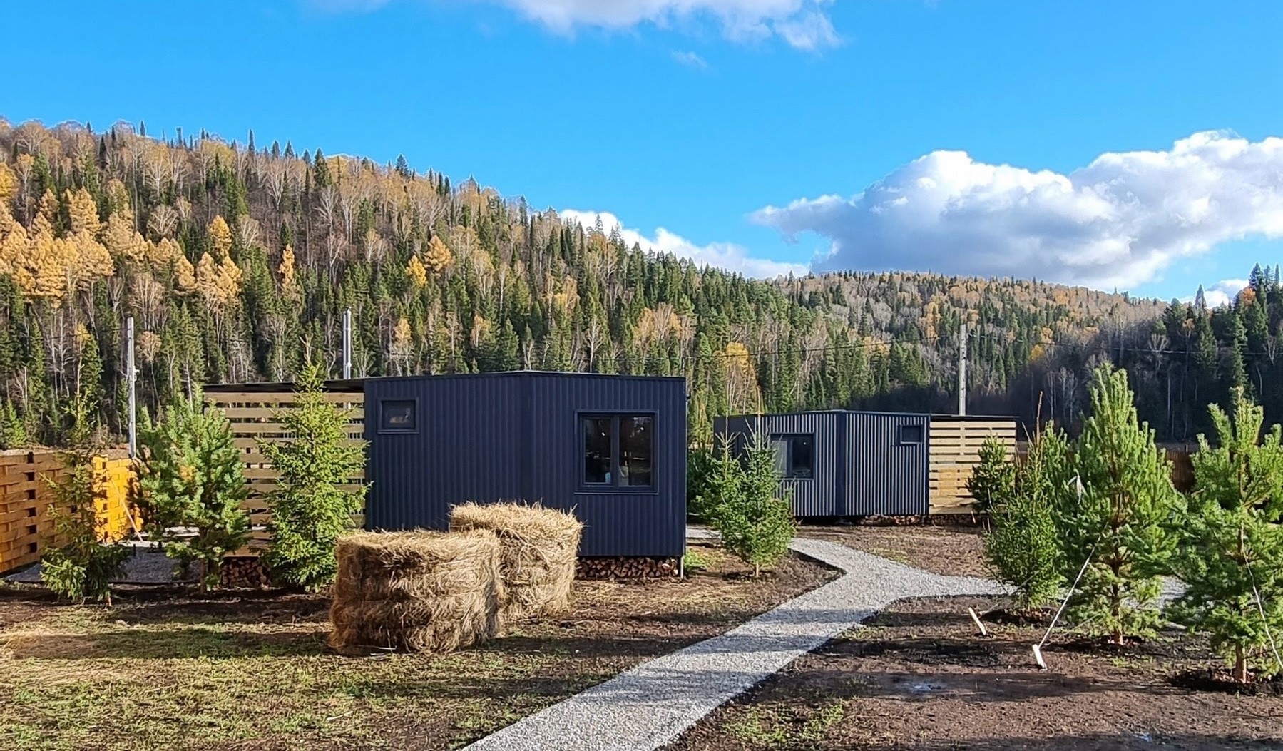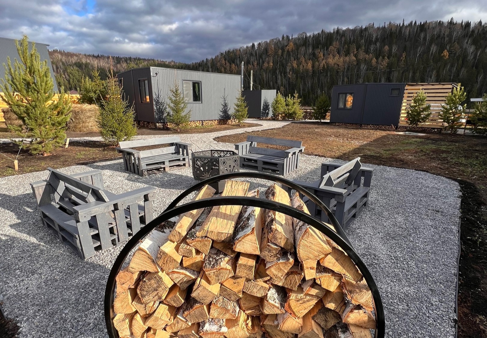 Глэмпинг, расположенный на первой береговой линии водохранилища, включает в себя три уютных комфортабельных домика с панорамными окнами – Черный, Белый и Малый. Каждый домик оснащен всем необходимым, внутри – удобные кровати, кухонный уголок с посудой и бытовой техникой, проектор или телевизор, доступна сеть wi-fi, есть персональный санузел. Перед домиками предусмотрены меблированные террасы и мангальные зоны с освещением.