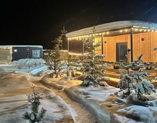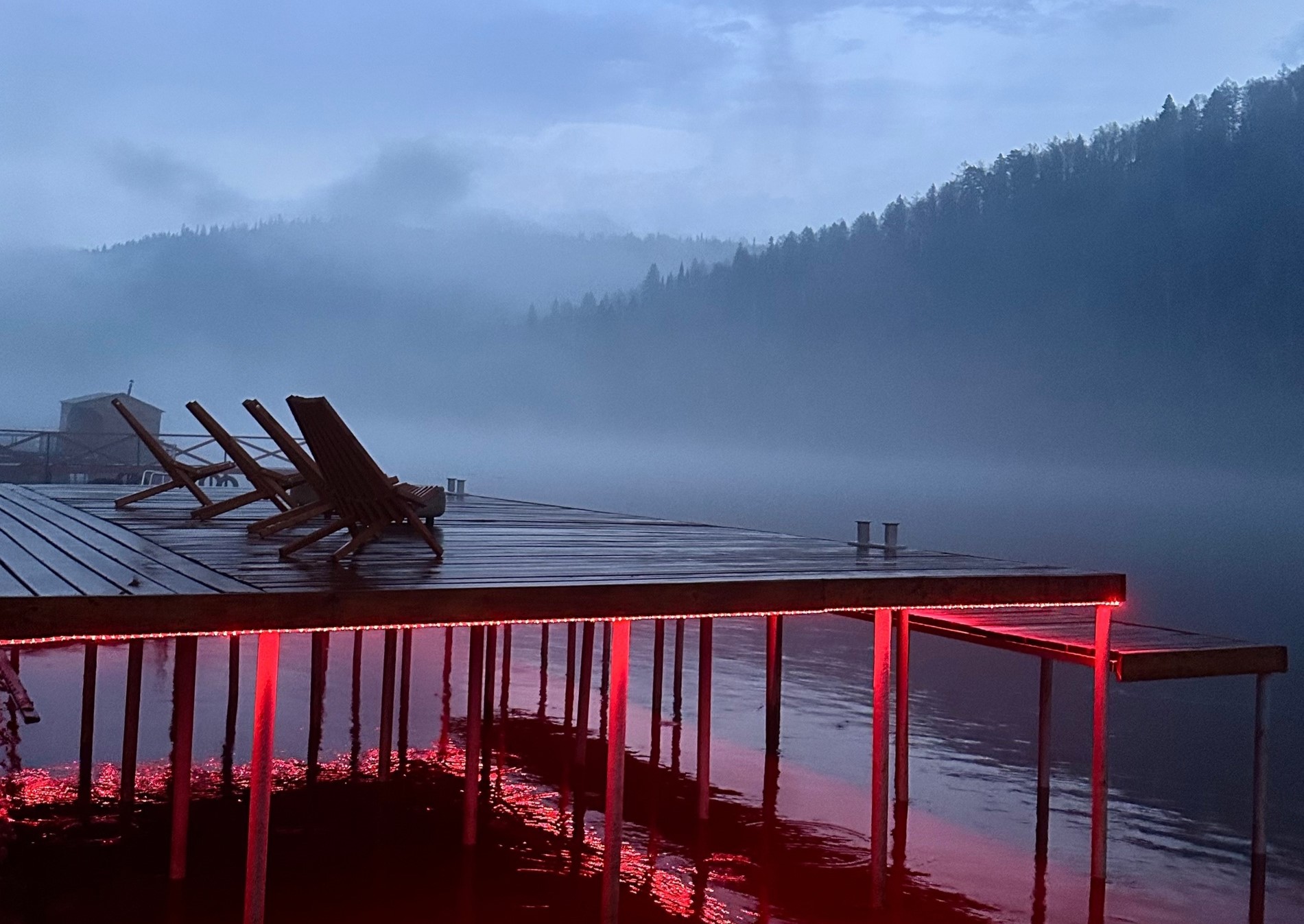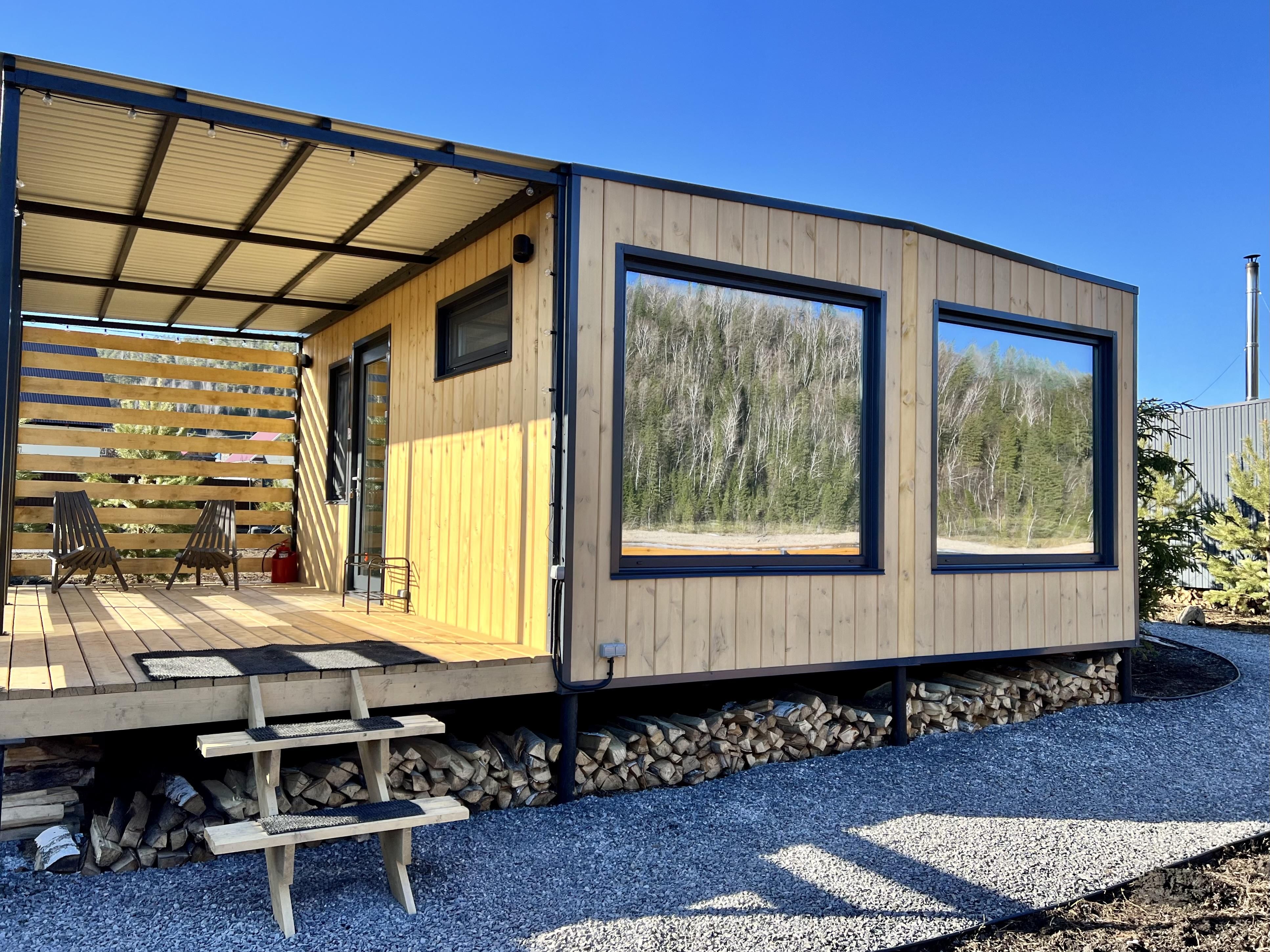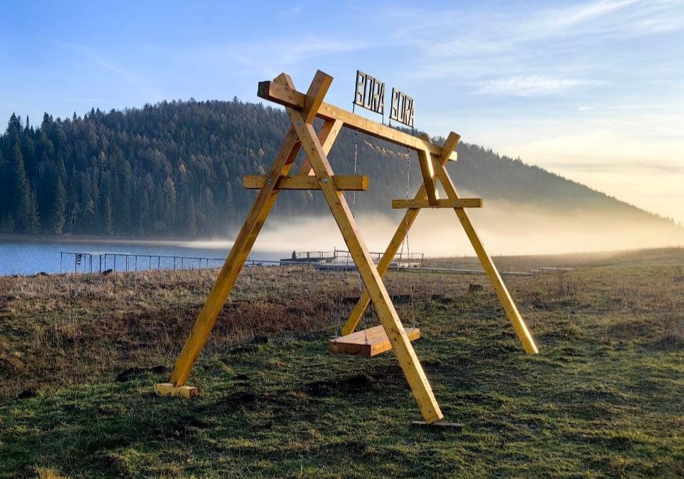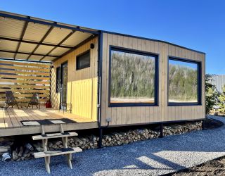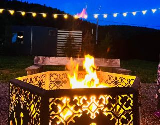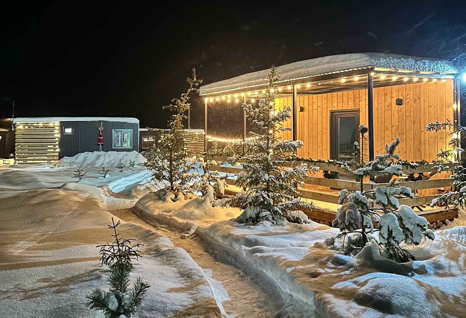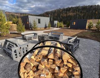Глэмпинг, расположенный на первой береговой линии водохранилища, включает в себя три уютных комфортабельных домика с панорамными окнами – Черный, Белый и Малый. Каждый домик оснащен всем необходимым, внутри – удобные кровати, кухонный уголок с посудой и бытовой техникой, проектор или телевизор, доступна сеть wi-fi, есть персональный санузел. Перед домиками предусмотрены меблированные террасы и мангальные зоны с освещением.