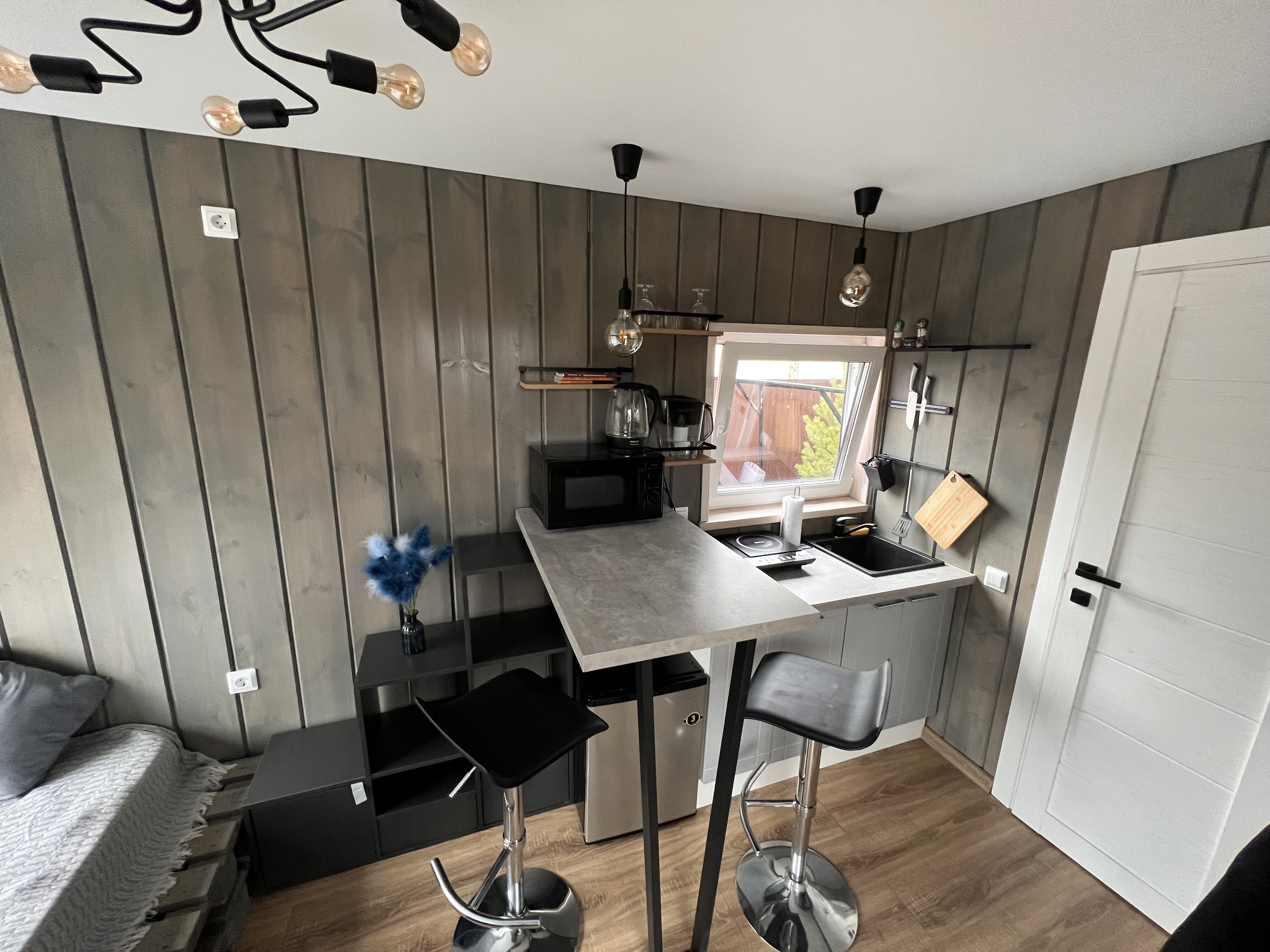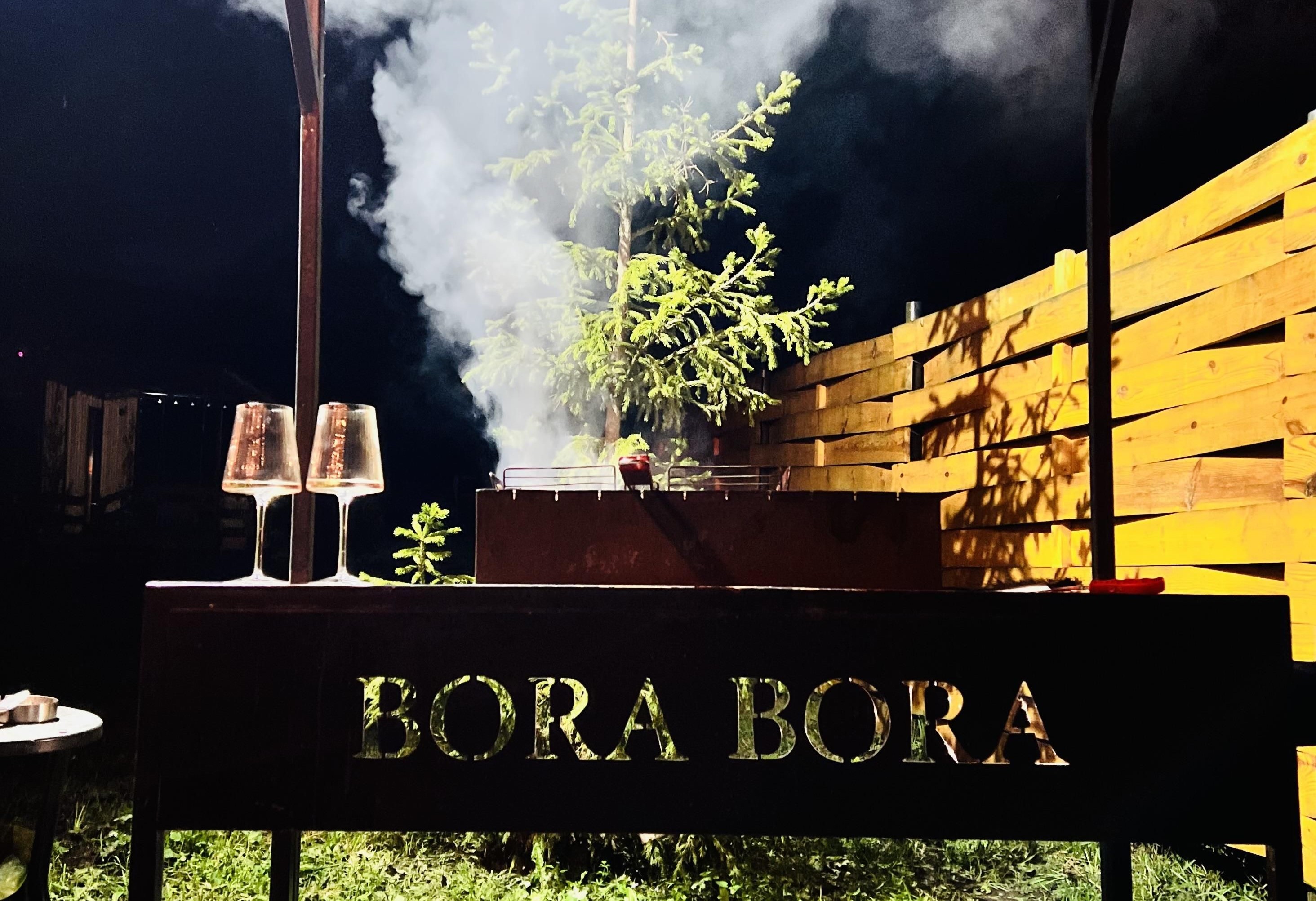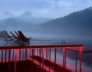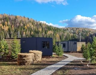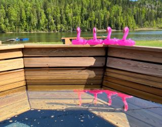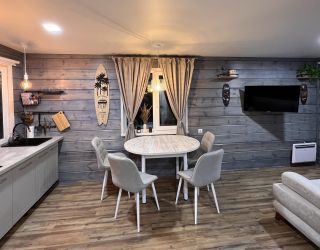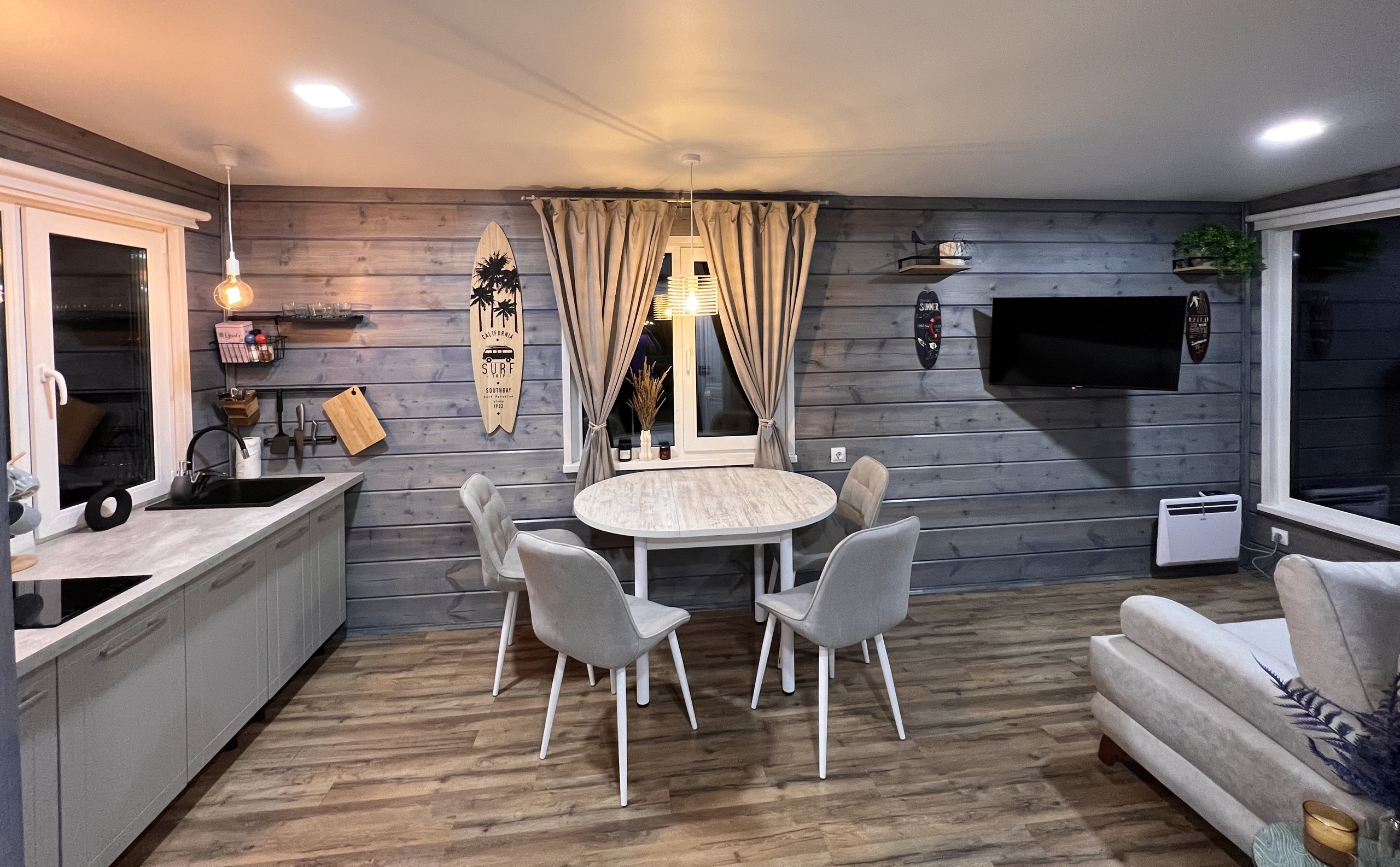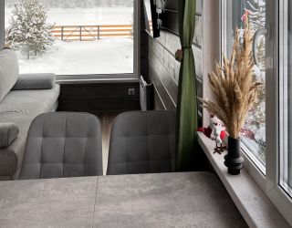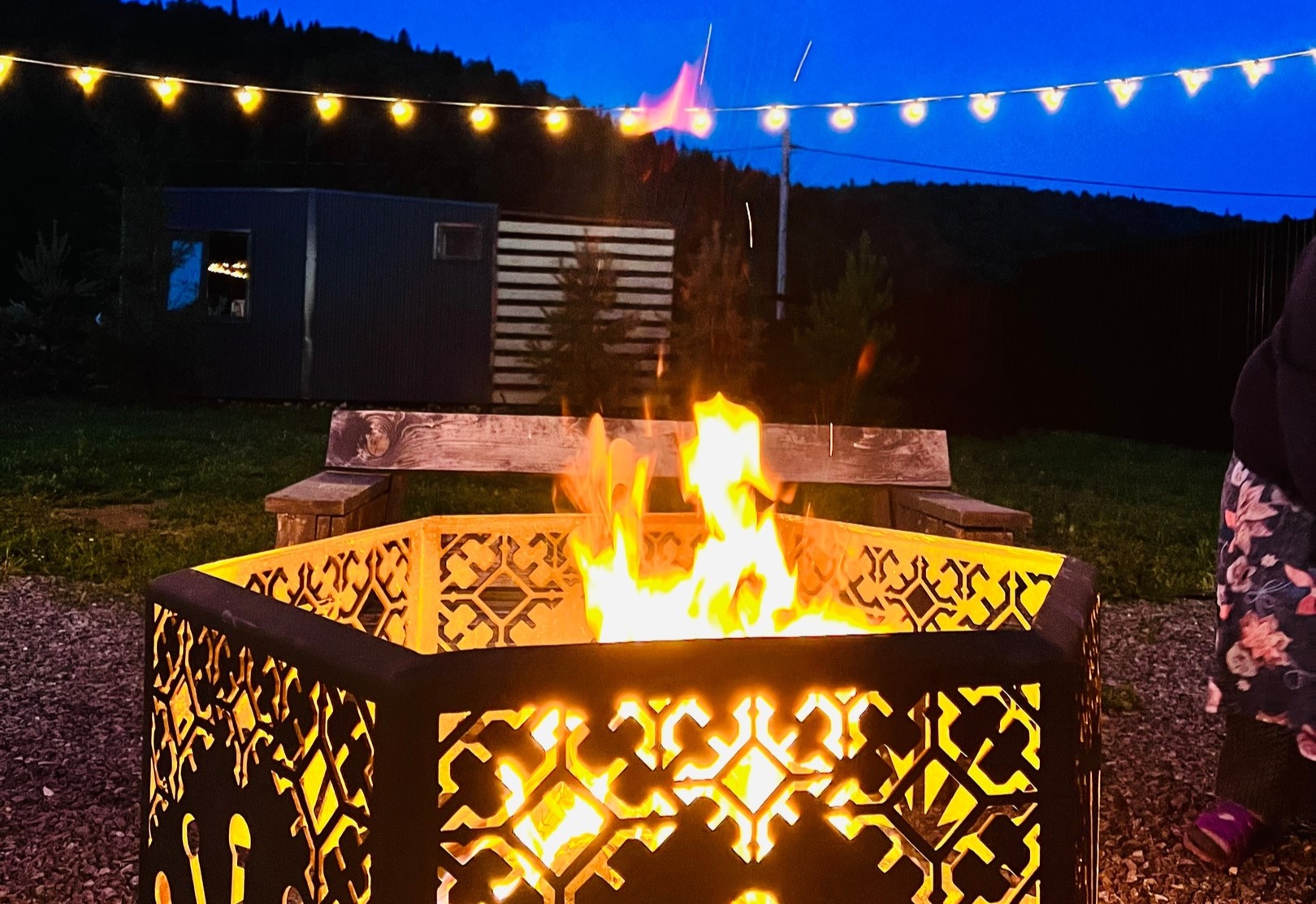 Глэмпинг, расположенный на первой береговой линии водохранилища, включает в себя три уютных комфортабельных домика с панорамными окнами – Черный, Белый и Малый. Каждый домик оснащен всем необходимым, внутри – удобные кровати, кухонный уголок с посудой и бытовой техникой, проектор или телевизор, доступна сеть wi-fi, есть персональный санузел. Перед домиками предусмотрены меблированные террасы и мангальные зоны с освещением.