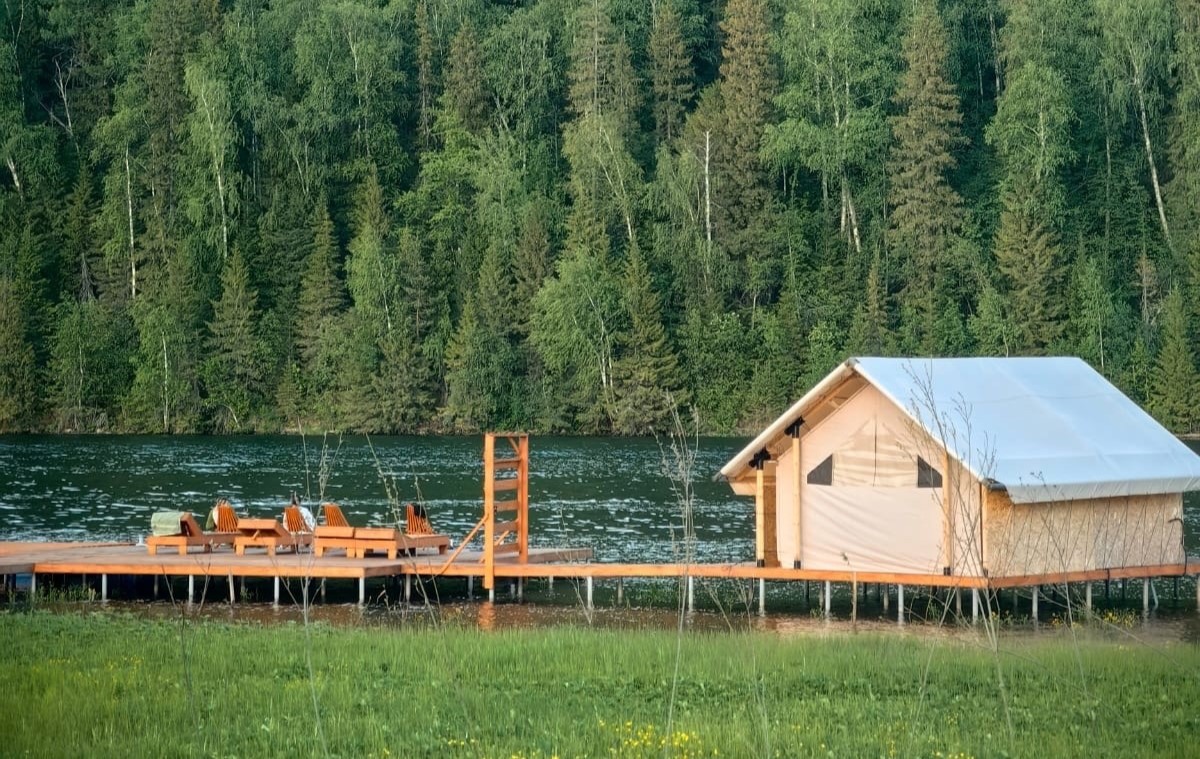 Глэмпинг находится в башкирской деревне Уразбахты, расположенной на берегу Павловского водохранилища в двух часах езды к северу от Уфы. Это живописное и тихое место, которое отлично пойдёт для тех, кто ищет спокойного размеренного отдыха на природе, но не хочет отказываться от привычных удобств.