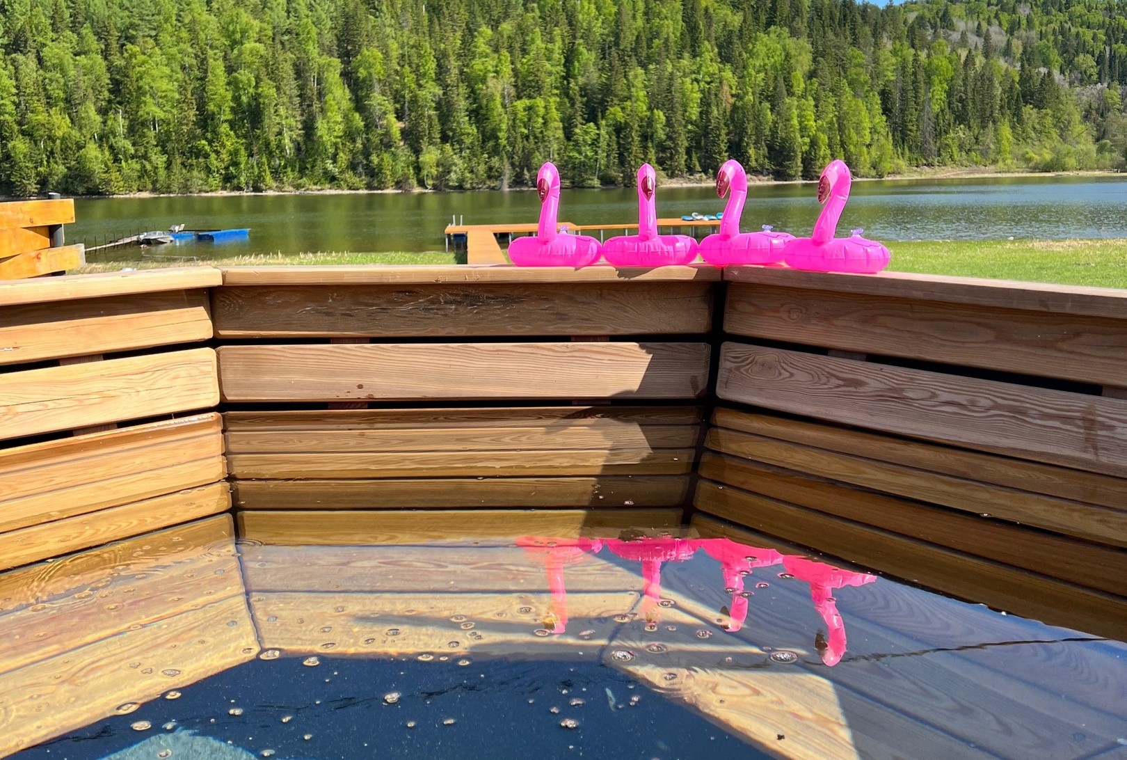 На территории организована костровая зона, есть беседка с мангалом, к услугам гостей баня и чан с горячей водой. На берегу оборудован пирс с лежаками. Летом желающие могут арендовать сапборды или катер, зимой – тюбинги, заливаются горка и каток. Для прогулок по окрестностям предоставляются напрокат велосипеды. В любое время года отдыхающим доступна рыбалка. Среди прочих удобств – парковка и возможность разместиться с любимым питомцем.