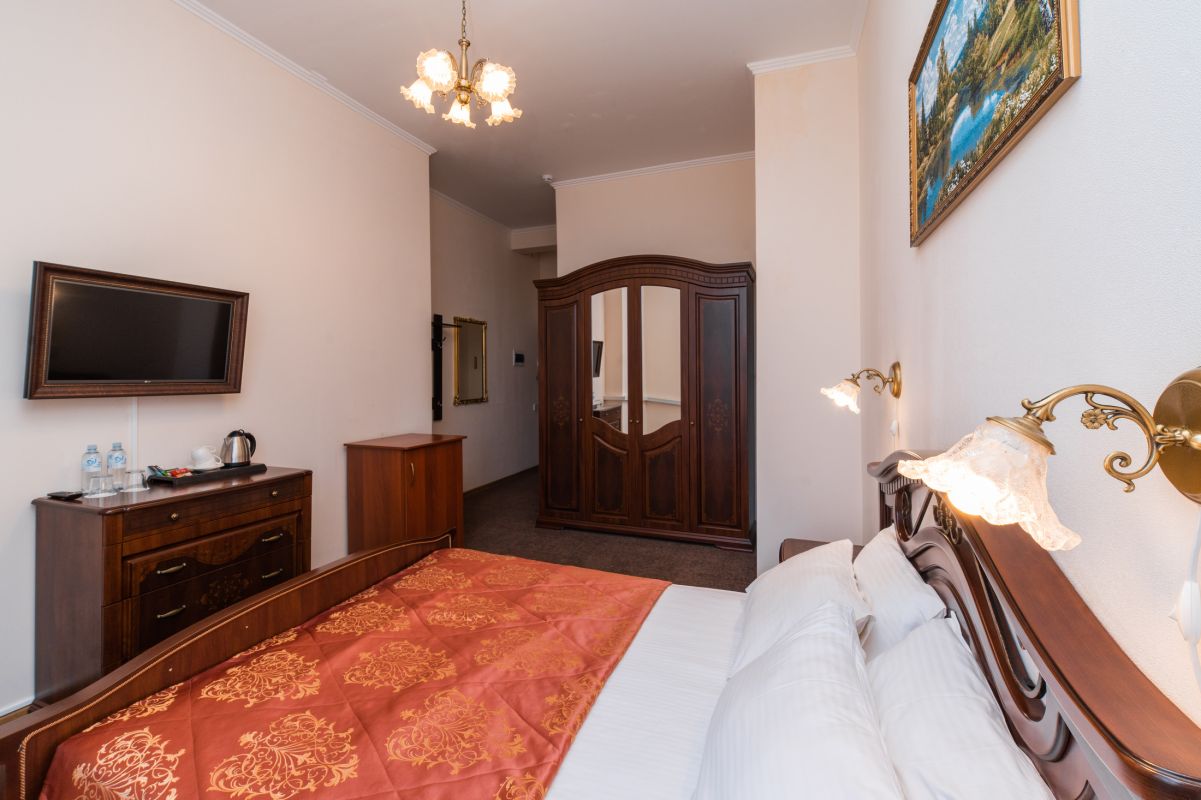 В номере: душ, туалет, ТВ, холодильник, сейф, фен, телефон, двуспальная кровать. Возможно размещение 2-х человек на основных местах + 1 дополнительное место.