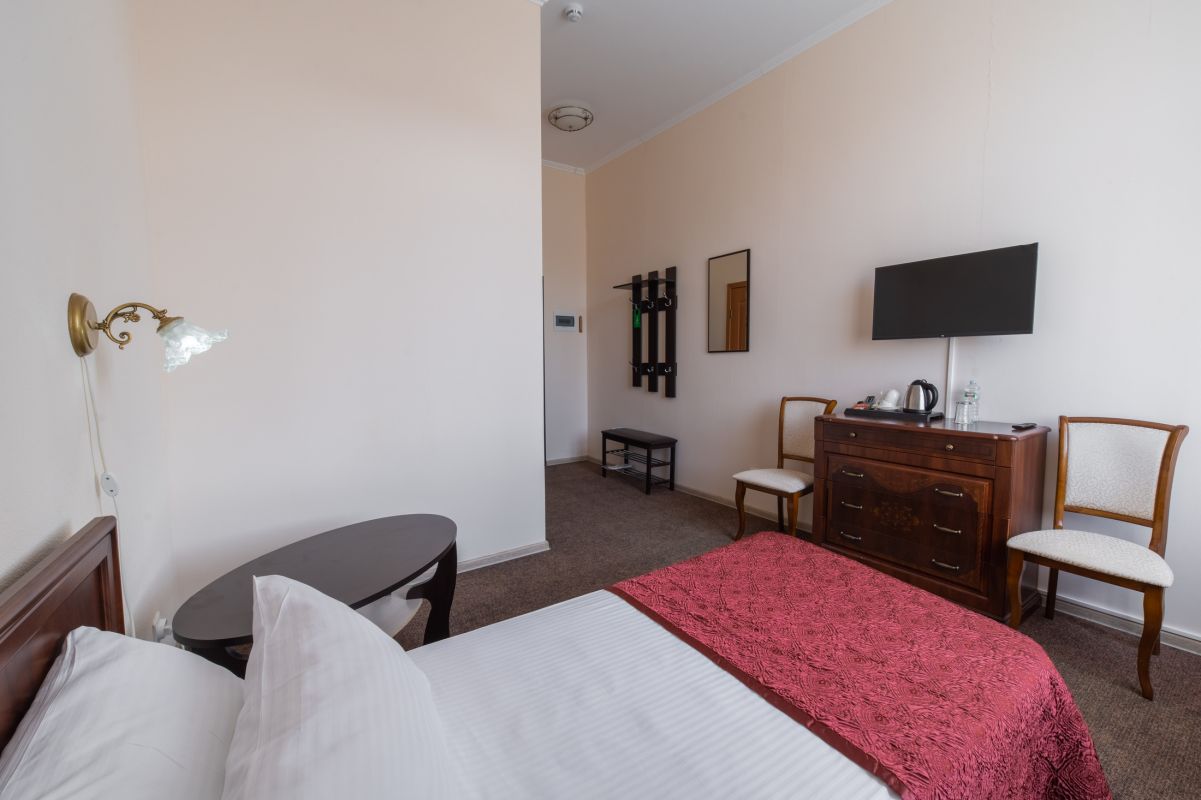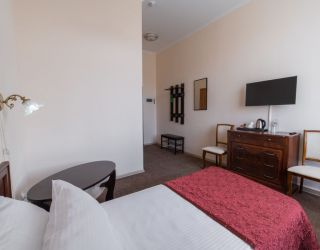 В номере: душ, туалет, ТВ, холодильник, сейф, фен, телефон, двуспальная кровать, диван, балкон (не во всех номерах). Возможно размещение 3-х человек на основных местах + 1 дополнительное место.