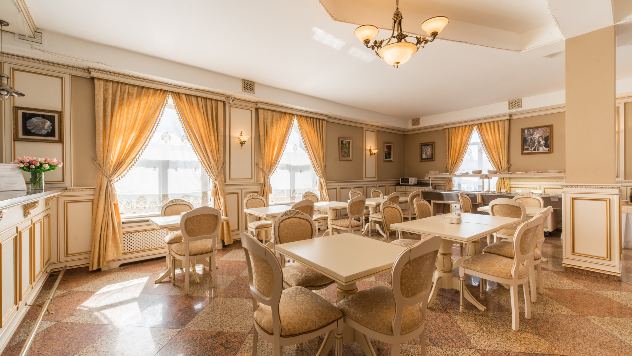 В ресторане предлагается питание по системе «шведский стол» на протяжении всего дня с 08:00 до 20:00. Завтрак плавно переходящий в обед, обед плавно переходящий в ужин, с постепенной сменой ассортимента предлагаемых блюд. Меню шведского стола, ассортиментный перечень блюд, алкогольных и безалкогольных напитков аналогичный с рестораном «Золотой лев». По пятницам и в предпраздничные дни работа ресторана продлена до 21:00. Информацию в каком ресторане будет предоставляться услуга питания, в случае работы обоих ресторанов, предоставляет администратор Службы приема и размещения при заселении.