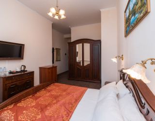 В номере: душ, туалет, ТВ, холодильник, сейф, фен, телефон, двуспальная кровать, диван, балкон (не во всех номерах). Возможно размещение 2-х человек на основных местах + 2 дополнительных места.