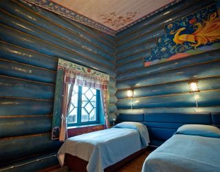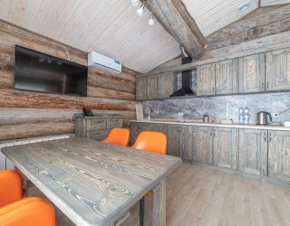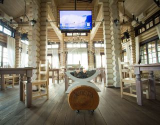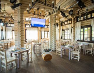 Зал площадью 80 м². Cтилизован под русскую избу и выполнен из натурального дерева.