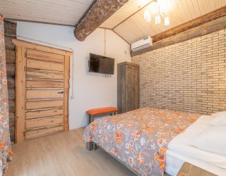 На благоустроенной территории площадью двенадцать гектаров разместились основной 4-этажный корпус гостиницы (без лифта), четыре 2-этажных коттеджа, восемь таунхаусов и эксклюзивный коттедж «Дом у ручья». Комфортабельные номера, интерьер которых стилизован под русскую избу и оформлен материалами из натурального дерева, оснащены санузлами с ванной и укомплектованы качественной мебелью, необходимой бытовой техникой – кондиционерами, телевизорами, холодильниками, в таунхаусах - добавляются микроволновые печи и сплит-система.