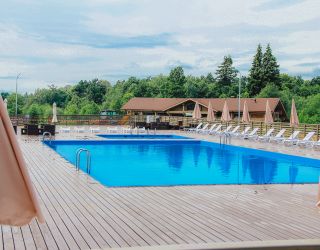 В распоряжении гостей банный комплекс с солевой и финской сауной, русской баней и турецким хаммамом, открытый бассейн с подогревом, библиотека, тренажерный зал, спортивная площадка для уличных игр, бильярд, караоке, тир. По вечерам в отеле работает команда аниматоров, гости могут посетить небольшую эко-ферму на территории или за дополнительную плату покататься на каяках. Также отдыхающим доступны беспроводной интернет, охраняемая парковка, оборудованный конференц-зал, вмещающий до ста двадцати человек, прокат велосипедов .