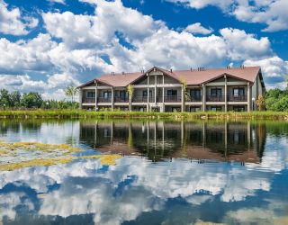 Четырехзвездочный отель «Лепота» находится в Талдомском районе на севере Московской области в восьмидесяти километрах от МКАД. Ближайший крупный город – Дмитров расположен в сорока минутах пути, до аэропорта Шереметьево девяносто пять километров. Эко-отель, расположенный в живописной местности на берегу реки Дубна и окруженный хвойным лесом, отличный вариант для загородного семейного отдыха.