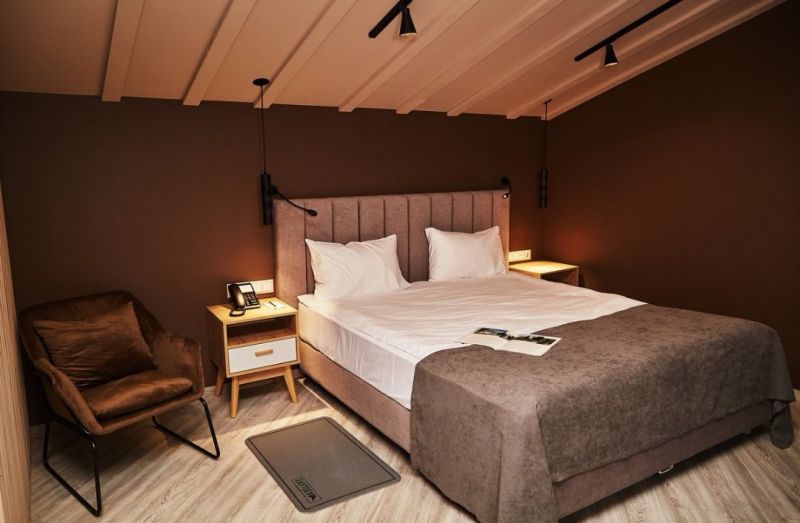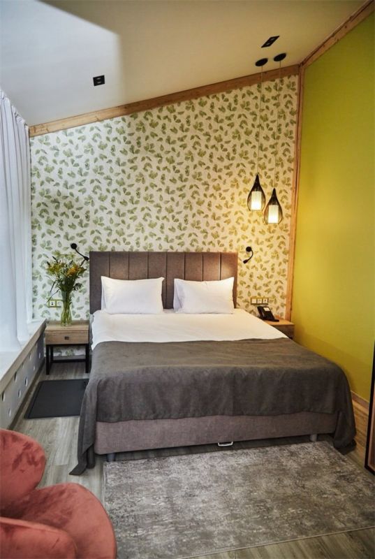 Все номера оснащены всем необходимым: сейф, письменный стол, чайник, холодильник, фен, косметические принадлежности. На территории работает шикарный ресторан "Кедр" с потрясающей кухней, летней верандой, детским меню и игровым уголком. На небольшой территории отеля в сосновом бору расположился каскадный водоем, с комфортными беседками. Это отличная фотозона и замечательное место для прогулок. Для любителей погреться есть сауна-бочка; для любителей спорта- настольный теннис, баскетбольное кольцо и мини-футбол. Вся территория оснащена Wi-Fi.