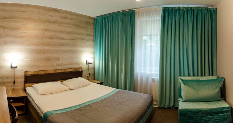 Гостиничный комплекс представлен одним двухэтажном корпусом и уютными гостевыми домиками. Номерной фонд состоит из нескольких категорий от бюджетных вариантов до люкс-класса. В номерах предусмотрена необходимая мебель – кровати, мягкая мебель, места для хранения вещей. Установлен телевизор, в номерах повышенной комфортности – кондиционер, мини-бар. В ванной комнате – душевая кабина или ванна, набор мыльных принадлежностей, набор полотенец, фен.