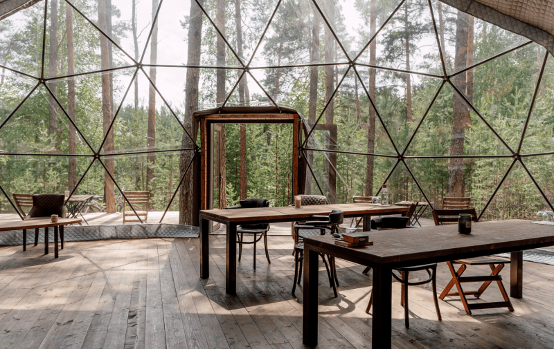 Тверская область приглашает туристов в пос. Приволжское. Проехав еще три километра по грунтовой дороге с ямами и неровностями в диком лесу, находится деревня Бурцево и от нее в 10 км на берегу Волги, разместился Эко-отель из купольных домов с удобствами. В модулях располагается большая двуспальная мягкая кровать с теплым одеялом, рукомойник, напольные свечи и пуф, печь-камин и дровами и биотуалет. В сказочном и уединенном лесу полно самых разных ягод и местных грибов. Гости эко- отеля всегда могут за дополнительную плату попариться в бане на берегу р. Волга. В стоимость включено вкусное и сытное трехразовое питание ресторанного уровня с большими порциями. Чай, кофе и какао в безлимитном доступе. Летом гости отеля всегда могут взять сап-борды, лодки, велосипеды. Wi-Fi и настольные игры в общей зоне. Разрешено бесплатное проживание с животными.