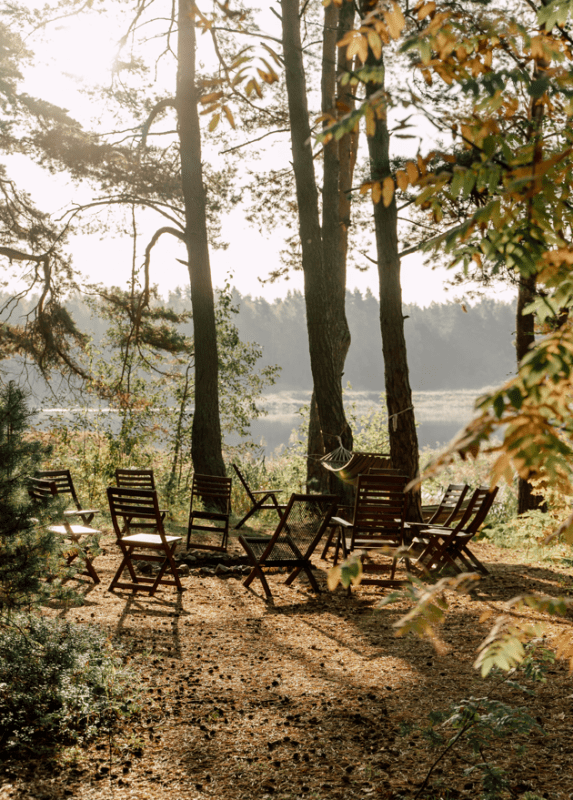 Поездом до ж/д вокзала Кольчугино, далее на автобусе №520 до остановки «Автостанция Александров», далее на электричке «Александров-1 - Поварово-3» до станции «39км(40км)», далее на автобусе №159 о остановки «Павловичи», далее 3,5 км до деревни «Бурцево», далее 10 км до глэмпинга.