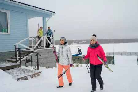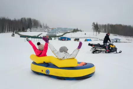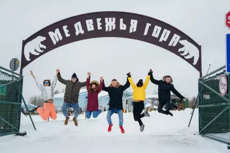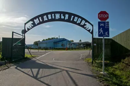 58 км от п. Юбилейный по Вологодской Трассе А-114 до указателя «Парк-отель «Медвежья гора».