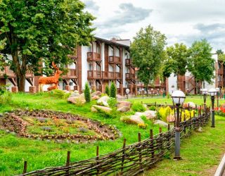 Поездом до ж/д вокзала г. Обнинск, далее 133 м до остановки и на маршрутке №603 двигаться до остановки «Лесная сказка», далее 1 км до парк-отеля.