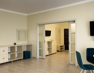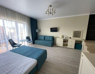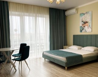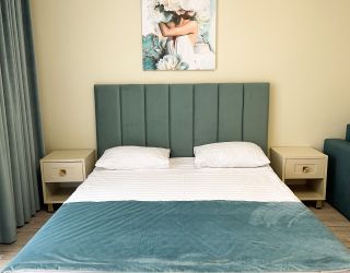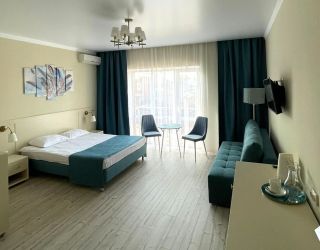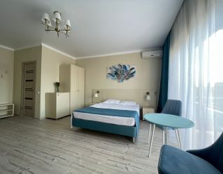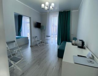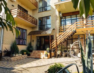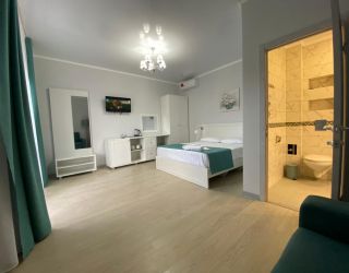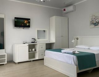 Трехэтажное здание с цокольным этажом разместилось в тихом зеленом квартале среди малоэтажной застройки. В распоряжении гостей однокомнатные и двухкомнатные номера, в некоторых имеются балконы или террасы. В комнатах стильный светлый интерьер, современная мебель, есть плазменный телевизор и кондиционер. Все номера оснащены индивидуальным санузлом с душевой кабиной, феном и набором косметических принадлежностей для гостей.