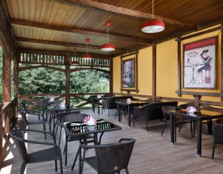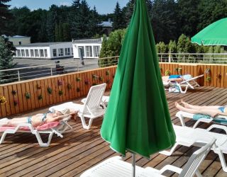 В пансионате есть столовая, где гости могут получить 3-х разовое диетическое питание. В распоряжении гостей — крытый бассейн, тренажерный зал и настольный теннис. Несколько раз в неделю устраиваются танцевальные вечера, проходят показы кинофильмов и другие развлекательные мероприятия. Для отдыхающих с машинами предусмотрена охраняемая парковка. Юные гости могут провести время на детской уличной площадке или в игровой комнате с воспитателями.
