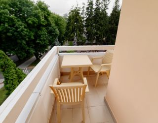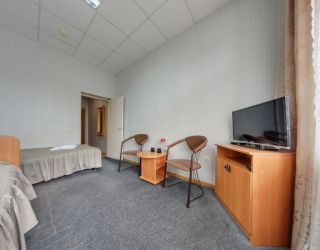 Здравница занимает небольшую территорию, на которой разместились 2 корпуса — один четырехэтажный, оборудованный лифтом, другой —двухэтажный. Жилой фонд, способный единовременно принять более 130 человек, предлагает гостям одноместные и двухместные номера разной категории. Во всех номерах есть санузел с душем и бытовая техника: телевизор, фен, электрочайник, холодильник.