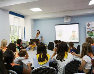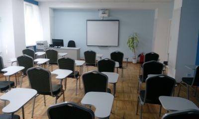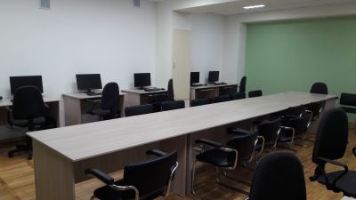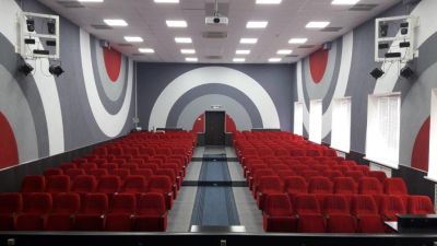 Оснащен современным мультимедийным оборудованием (проектор, широкоформатный экран, микшер, усилитель, радиомикрофоны, презентер LOGITECH R400, черный, ноутбуки). С возможностью просмотра кинофильмов, мультфильмов, концертов, актовый зал с возможностью проведения музыкальных вечеров, дискотек.