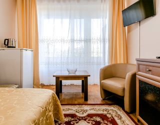 Здравница занимает обширную благоустроенную с беседками для отдыха, дорожками для прогулок и вечерней подсветкой. Ее общая площадь почти 7,5 гектаров. Жилой фонд, рассчитанный на 400 человек, предлагает отдыхающим номера различной категории комфорта — от Стандарта о Люкса. В каждом номере есть собственный санузел, телевизор, холодильник, электрочайник. Люксы оборудованы кондиционером и дополнительной техникой.
