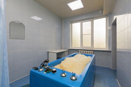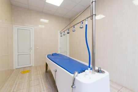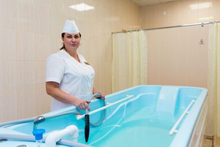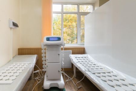 Поездом до ж/д вокзала г. Ессентуки, далее пройти пешком 220 м до остановки «Железнодорожный вокзал», далее на маршрутном такси №9,21 до остановки «Грязелечебница», далее пройти пешком 280 м до санатория.