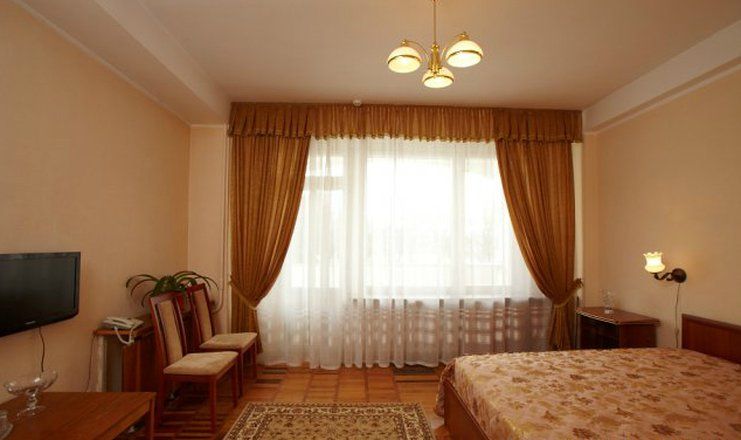 Здравница разместилась на благоустроенной и охраняемой территории площадью 8,5 гектаров. В состав санатория входят три многоэтажных спальных корпуса, соединенных теплыми переходами и лечебный корпус. Жилой фонд, рассчитанный на 360 человек, предлагает номера категории Стандарт, Улучшенный и Люкс. В номерах классический интерьер в теплой цветовой гамма. В каждом есть собственный санузел, телевизор, холодильник.
