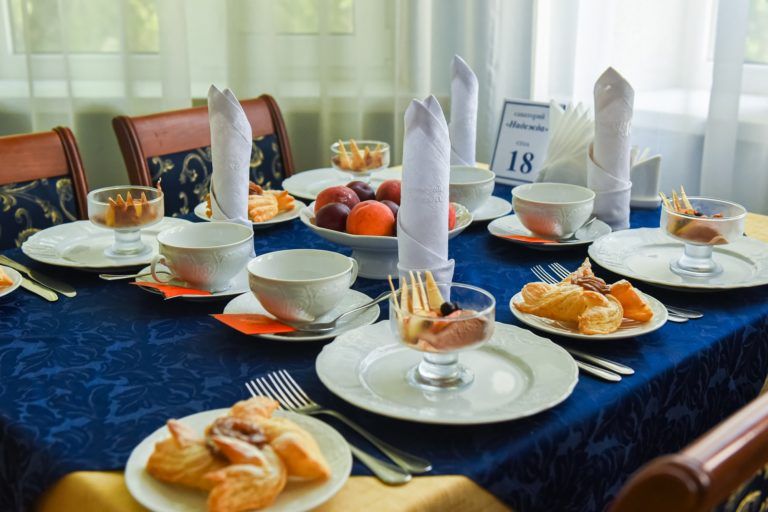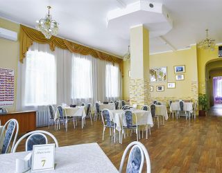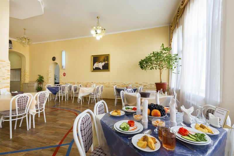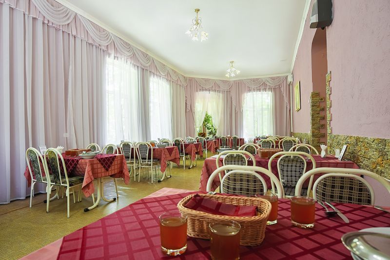 Санаторий предлагает отдыхающим трехразовое питание в столовой по заказной системе. При этом выбор диетических блюд в меню достаточно широкий.