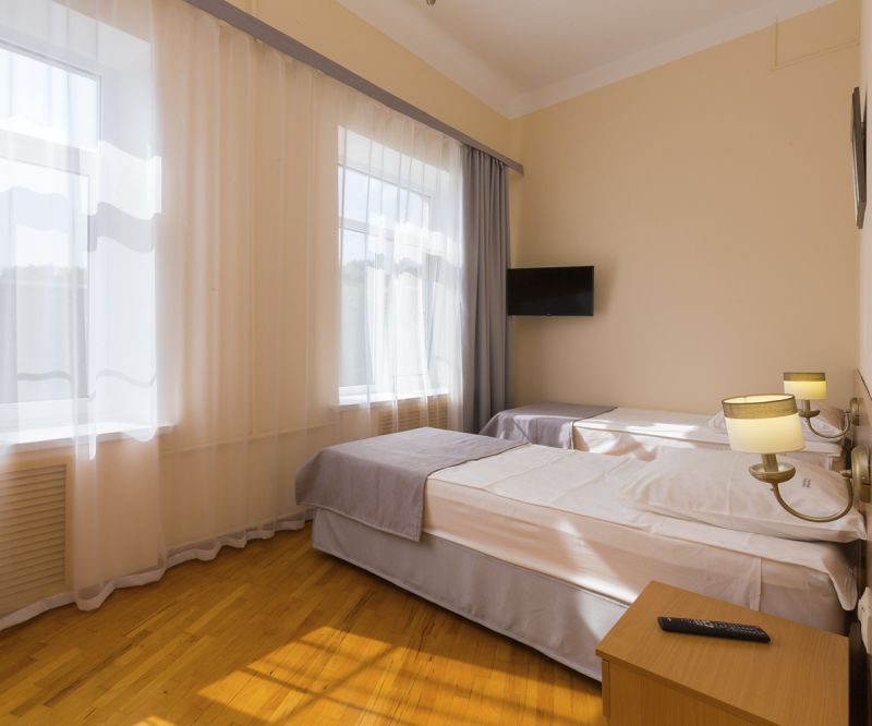 Постояльцы смогут разместиться на выбор в номерах класса «стандарт», повышенный комфорт, одно- и двухкомнатный «люкс». В каждом номере предусмотрена необходимая комфортная мебель, установлены телевизоры, холодильники и электрочайники, а также есть санузел и душевая. На каждом этаже спального корпуса оборудован холл с мягкими диванами и телевизором.