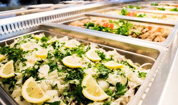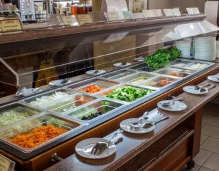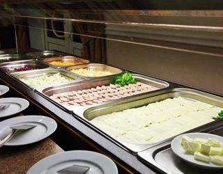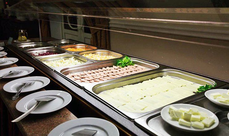 Питание в санатории «Шахтер» в Ессентуках трехразовое, по принципу шведского стола. Предлагаются блюда европейской, русской и кавказской кухонь; возможно вегетарианское и диетическое питание.