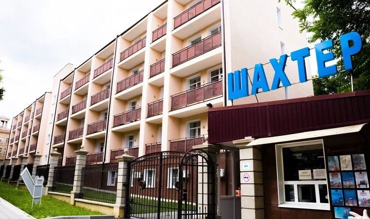 Сайт компании "Отель групп" по бронированию Санаторий "Шахтер, добраться до санатория: - Самолетом до аэропорта г. Минеральные Воды, далее на маршрутном такси №11 до остановки «Вокзал», далее на электричке «Минеральные Воды - Кисловодск» до станции «Ессентуки», далее пройти пешком 970 м до санатория.