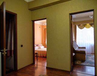 Поездом до ж/д вокзала Ессентуки, далее на маршрутном такси 9 до остановки «Санаторий Казахстан», далее пройти пешком 263 м до отеля.