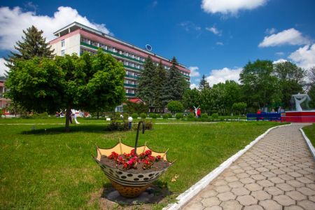 Поездом до ж/д вокзала г. Ессентуки, далее на маршрутном такси №12 до остановки «Стадион», далее пройти пешком 830 м до санатория.