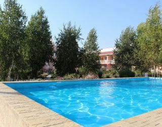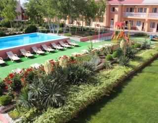В часы завтрака, обеда и ужина на территории работает столовая. В распоряжении гостей открыты неглубокий бассейн, рядом — зона отдыха с шезлонгами. Пресная вода в бассейне не подогревается, поэтому он работает только в летний сезон. На территории доступен беспроводной интернет. Для детей организована игровая площадка с горками и качелями.