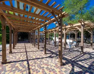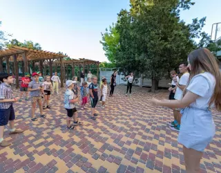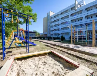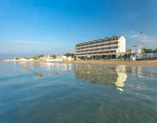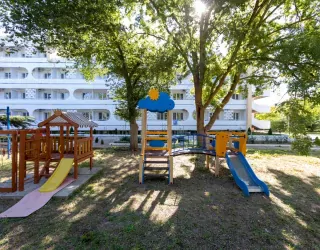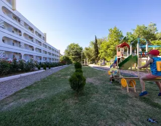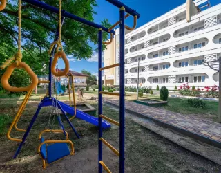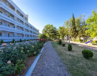 Территория комплекса зеленая, закрытая, охраняемая. Находится «Family Resort» в центре парковой курортной зоны Евпатории, в пешей доступности от городской инфраструктуры развлечений.