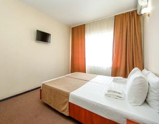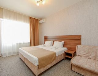 Номерной фонд - 139 номера категорий полулюкс и стандарт. Все номера оборудованы санузлами с душем, телевизорами, холодильниками и кондиционерами. С верхних этажей открывается вид на море и лечебное озеро Мойнаки.
