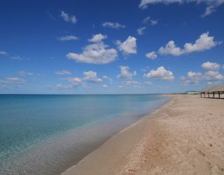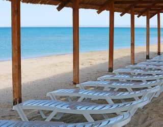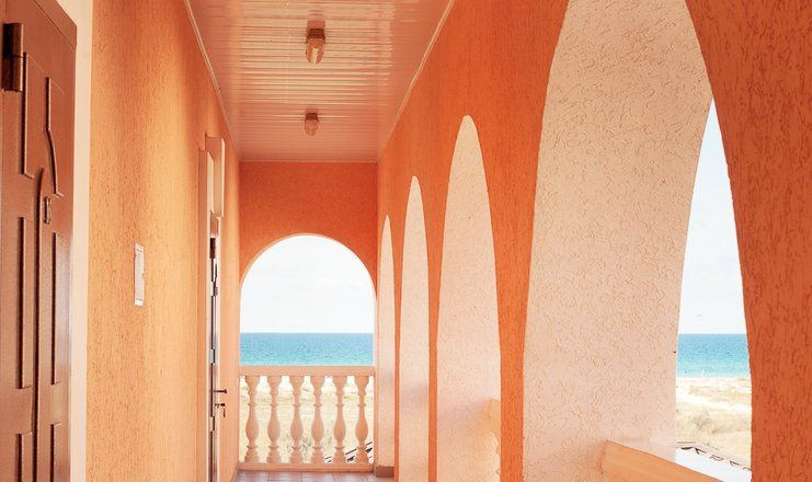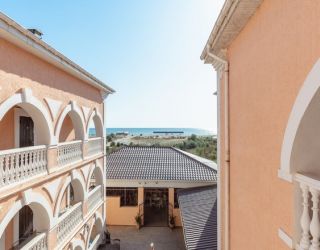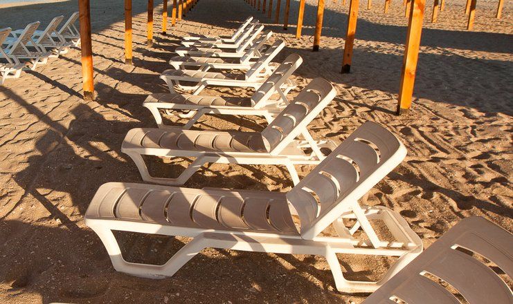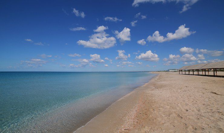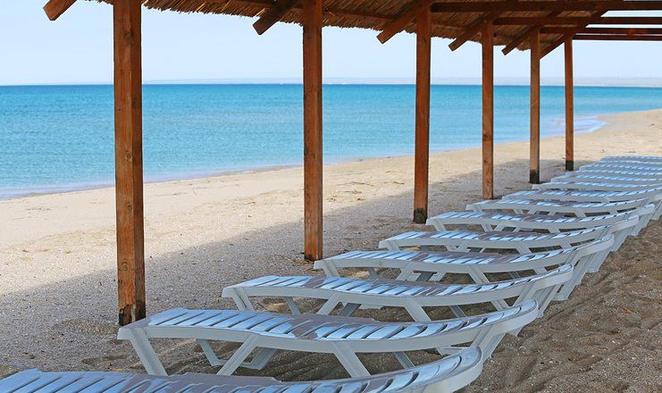 Чистейший пляж посёлка с пологим входом в море находится в 50 м от «Natalia».