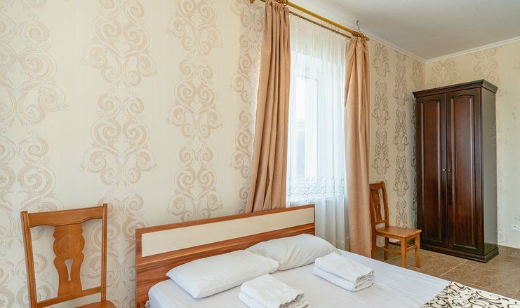 Трехэтажный жилой корпус отеля “Натали” в Евпатории имеет 29 комфортабельных номеров, в которых могут расселиться одновременно около 60 человек. Все номера отеля, независимо от категории, укомплектованы необходимой мебелью, оборудованы санузлами с душем. В каждом номере есть кондиционер, ТВ, Wi-Fi, холодильник.