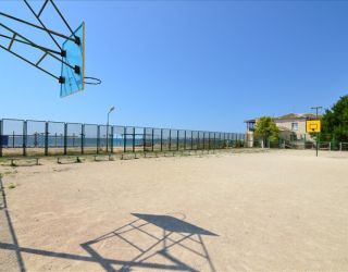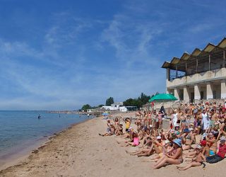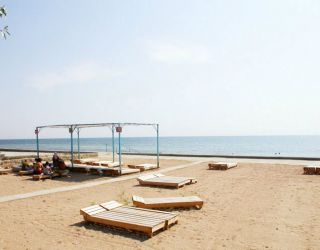 Всего в нескольких шагах от жилых корпусов находится собственных санаторный пляж. На песчаном пляже есть навесы, шезлонги, кабинки для переодевания.