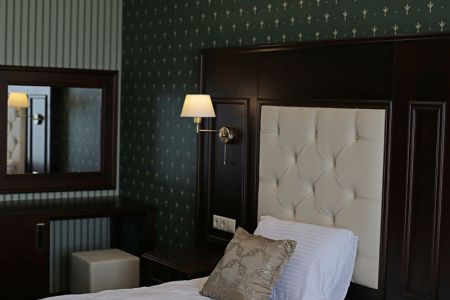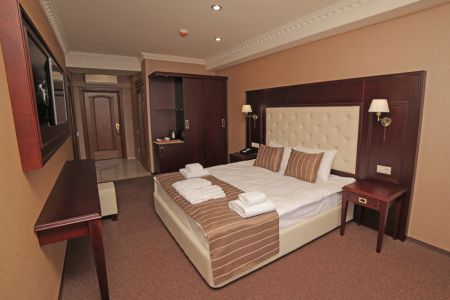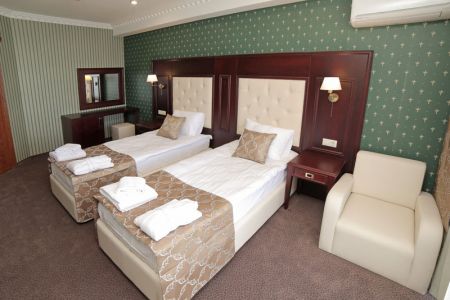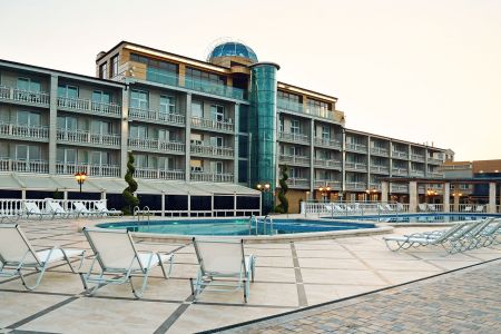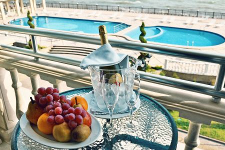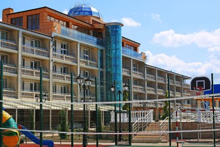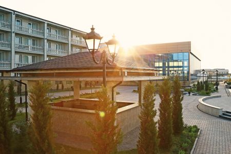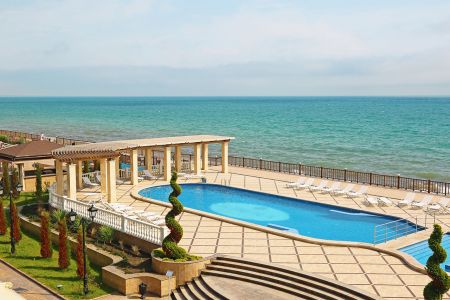 Поездом до ж/д вокзала г. Симферополь, далее на рейсовом автобусе «Симферополь-Евпатория» до остановки «Сервисгаз», далее пройти пешком 1,8 км до отеля.