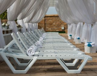 Гости пансионата пользуются открытым пресноводным бассейном с джакузи, spa-центром, кабинетами массажа и косметологии.