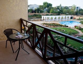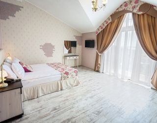 Ухоженная территория закрыта от посторонних и охраняется. Трёхэтажный корпус пансионата построен из экологических материалов, способен вместить около 90 гостей одновременно. Номера категории «люкс» и «полулюкс», «стандарт» и «стандарт мансарда» имеют отдельные санузлы с душем. Каждый из них оборудован кондиционером и холодильником, ТВ и wi-fi.